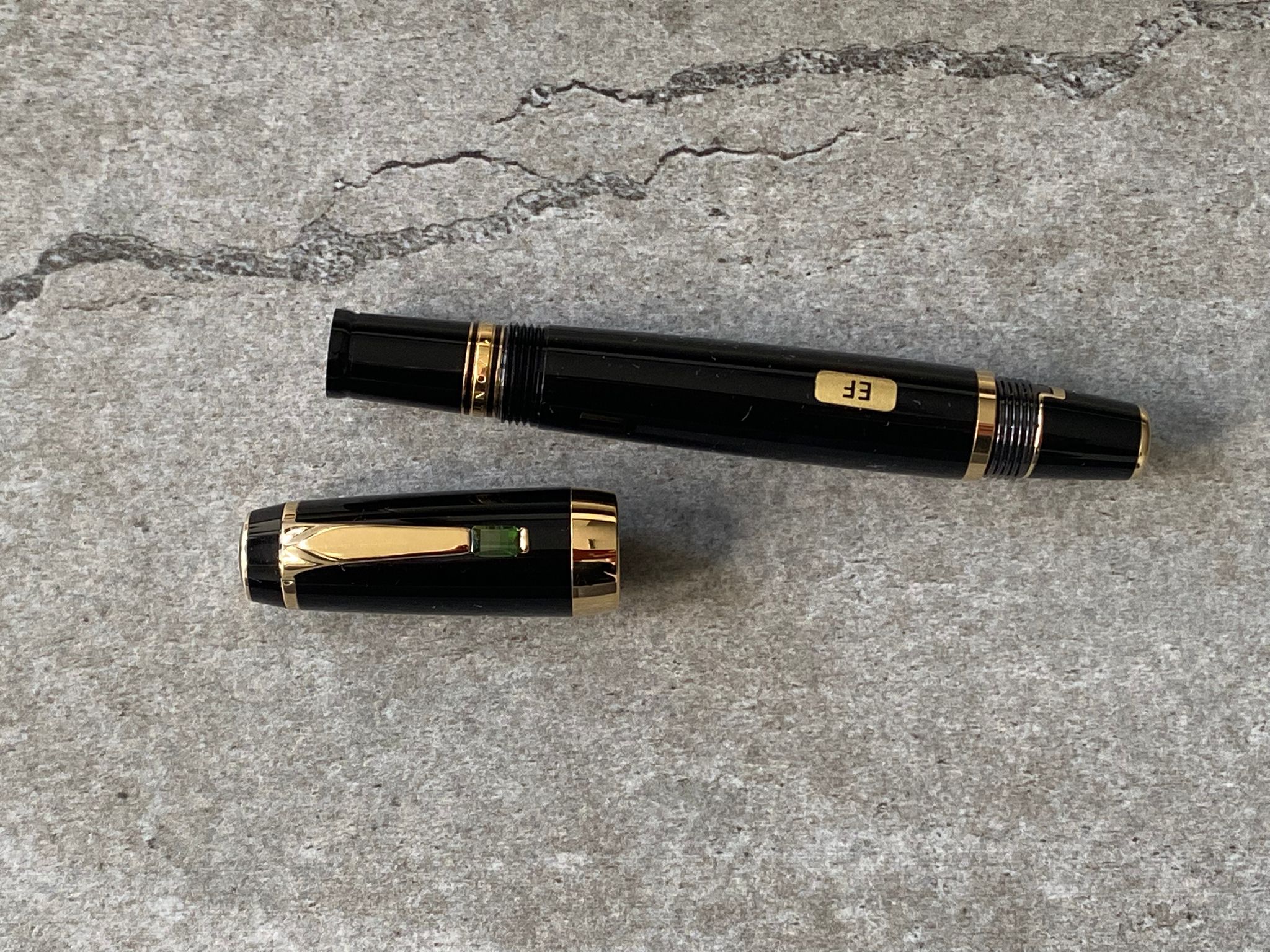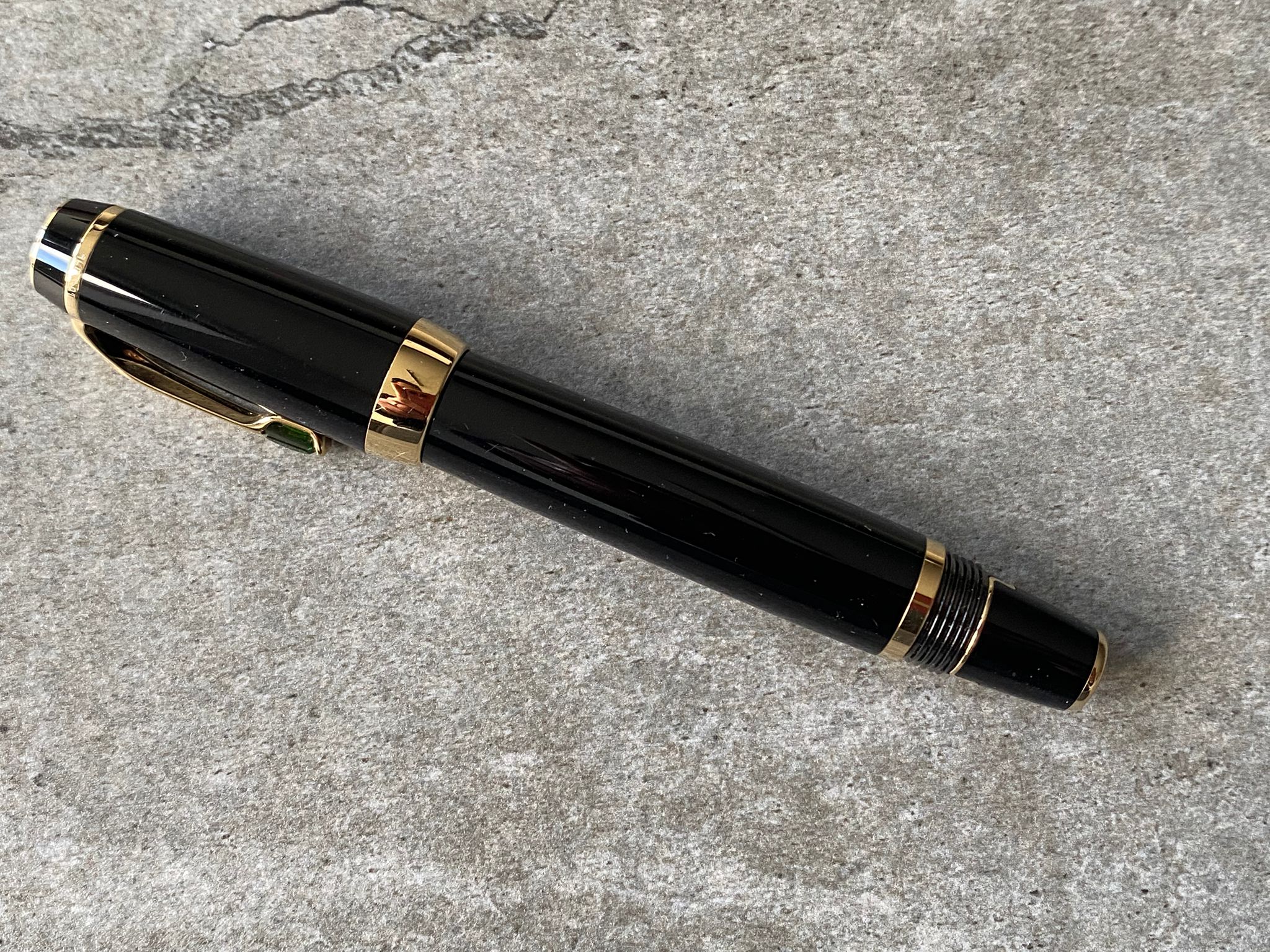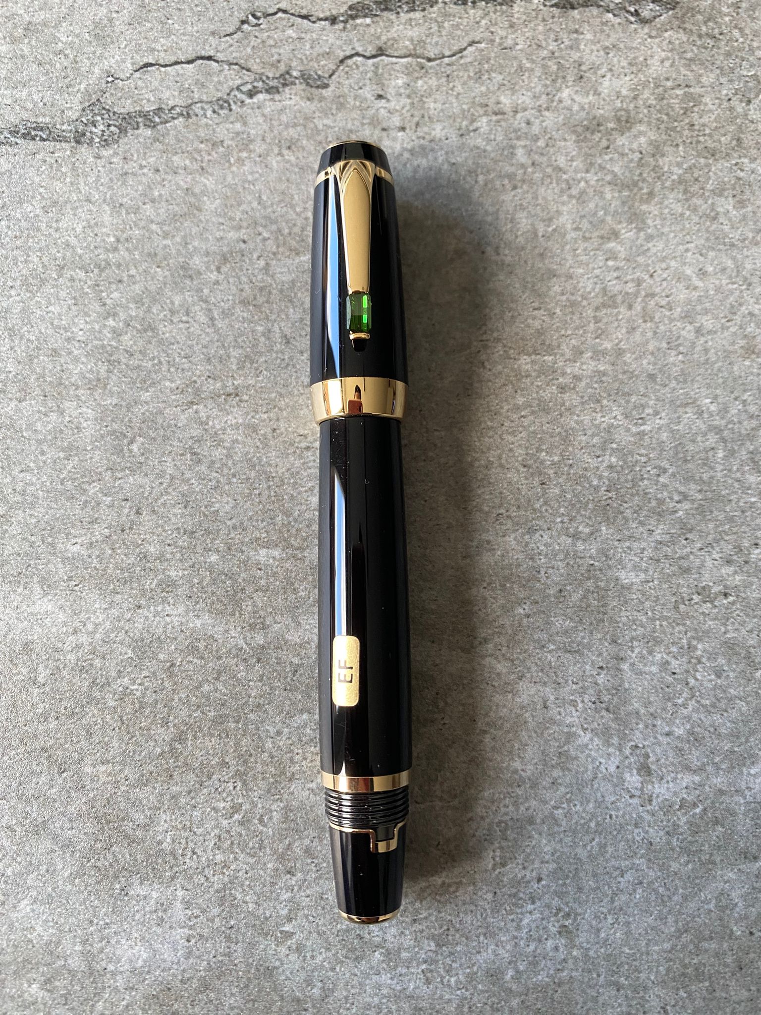 Model: Gold plated trims and vert (green) gemstone fountain pen.